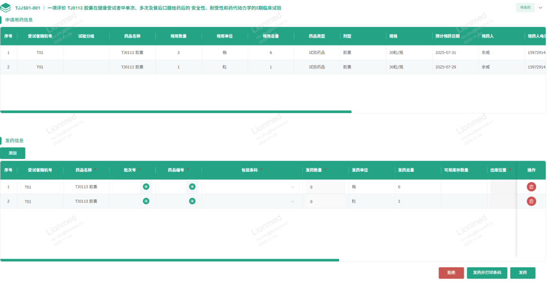 支持臨床試驗藥品的快速分發(fā),降低分發(fā)錯誤率,并且支持盲態(tài)發(fā)藥。